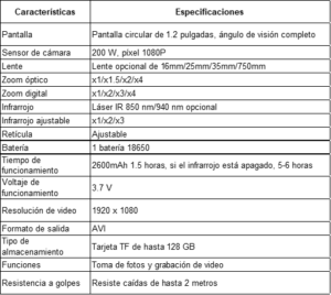 Dispone de un visor óptico redondo que mide 1.2″ de diámetro. Se puede ver desde cualquier ángulo sin distorsiones. El sensor de imagen capta la luz y la convierte en datos digitales. Tiene una resolución de 1080 píxeles, lo que permite obtener imágenes de alta calidad. Se pueden utilizar diferentes lentes para obtener distintos ángulos de visión y niveles de zoom (se venden por separado) Permite acercar la imagen sin perder calidad, utilizando componentes ópticos de la lente. Permite acercar la imagen digitalmente, pero puede reducir la calidad de la imagen Utiliza luz infrarroja invisible para grabar en condiciones de…